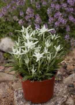 meie valik püsikuid Alpi jänesekäpp ‘May Snow’Leontopodium alpinumL: 10 cm, K:10 cm, õiega kõrgus 15 cm.Õie värv hele, taim kaetud heledate pehmete karvakastega.Kiviktaimlasse, päikeseline koht. Vastupidav püsik